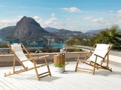 Beliani Zestaw 2 Leżaków Ogrodowych Ciemne Drewno Akacjowe Wzór Geometryczny Wielokolorowy ANZIO