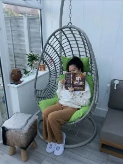 W tym praktycznym fotelu wiszącym zawsze będziesz mógł się zrelaksować. Jego nowoczesny, kształtny kosz wyposażony jest w grube poduszki w świeżym odcieniu zieleni, które są niezwykle wygodne. Siedzisko zawieszone jest na stabilnym stelażu, co sprawia, że fotel można przenieść i ustawić zarówno w mieszkaniu, jak i ogrodzie zimowym. Uroczy splot rattanu kreuje przytulną atmosferę w pomieszczeniu.