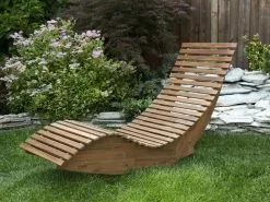 Ten rustykalny leżak ogrodowy, wykonany w całości z wytrzymałego, drewna akacjowego umożliwi relaks i odpoczynek w ogrodzie. Jego łukowaty kształt zapewnia wygodną pozycję leżenia, a wygięta podstawa pozwala na delikatne bujanie. Dołączona do leżaka poduszka, w brązowoszarym kolorze, została wykończona wysokiej jakości poliestrem.