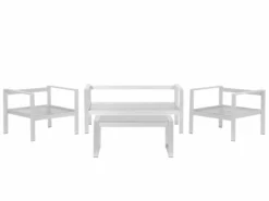 Elegancki, nowoczesny, a przy tym cechujący się prostotą zestaw ogrodowy dla 4 osób z pewnością wspaniale wkomponuje się w każdy ogród. Składa się on z dwuosobowej sofy, dwóch wygodnych krzeseł ogrodowych z podłokietnikami i praktycznego stolika. Wykonany z wytrzymałego aluminium jest niezwykle lekki oraz odporny na działanie warunków atmosferycznych. Szczodrze wyściełane poduchy na siedzisku oraz oparciu zapewniają najwyższy komfort. Dołączony stolik kawowy oferuje sporo miejsca na kawę, przekąski lub ulubioną książkę.