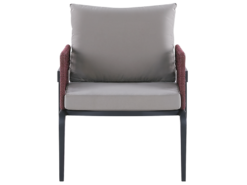 Ten elegancki zestaw ogrodowy pomoże Ci stworzyć stylową przestrzeń w twoim ogrodzie lub patio. W jego skład wchodzi sofa dwuosobowa, dwa fotele oraz prostokątny stolik kawowy. Zarówna sofa oraz fotele wykonane są z wysokiej jakości aluminium, oraz stali, dzięki czemu wymagają minimum pielęgnacji i są odporne na umiarkowane warunki pogodowe. Z kolei kamienny blat stołu doda naturalnego akcentu do każdej aranżacji. Gęste wypełnienie w poduszkach zapewni odpowiednie wsparcie oraz komfort. Dzięki prostemu, lecz nowoczesnemu wyglądowi, ten zestaw będzie pasował do każdej przestrzeni, zarówno na zewnątrz jak i w środku.