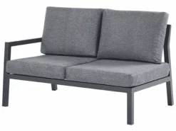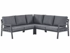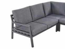 Dodaj miejsce do relaksu do swojego ogrodu za pomocą tego zestawu mebli i przemień go w miejsce spotkań z rodziną czy przyjaciółmi podczas ciepłych dni. Elementy ramy wykonane są z trwałego i łatwego w utrzymaniu aluminium. Każde siedzisko wyposażone jest w grube, poliestrowe poduszki, które nie tylko zwiększą komfort użytkowania, ale podkreślą także nowoczesny wygląd mebla. Modułowe części produktu umożliwią ustawienie go według własnych potrzeb, a dołączony stolik kawowy pomieści napoje czy jedzenie bez większych problemów.