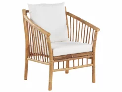 Przekształć swój ogród w miejsce spotkań z przyjaciółmi za pomocą tego zestawu mebli. Składa się on z dwóch foteli, sofy oraz stolika kawowego – wszystkie te elementy wykonane zostały z wysokiej jakości drewna bambusowego. Oprócz tego, meble do siedzenia mają też zestaw poduch na siedziskach oraz oparciach, zrobionych z poliestru, dzięki czemu czas spędzony na nich będzie przyjemny i wygodny. Ze względu na materiały, meble prezentować się będą najlepiej w przestrzeniach utrzymanych w stylu rustykalnym.