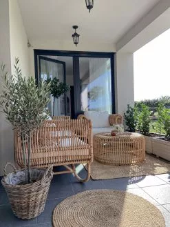 Wprowadź do swojej przestrzeni naturalne materiały i czerp korzyści z ich uniwersalności, wytrzymałości oraz estetycznego wyglądu. Ten zestaw mebli rattanowych wniesie sporą dawkę stylu boho do każdego salonu, werandy lub balkonu. Zawinięte podłokietniki są niezwykle dekoracyjne, a grube rattanowe nogi zapewniają stabilność mebli. Miękkie bawełniane poduszki mają zdejmowane poszewki dla łatwiejszego utrzymania sofy w czystości. Możesz korzystać z kanapy i foteli w domu, a gdy pogoda się poprawi, wystawiać je na zewnątrz.