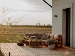 Beliani Zestaw Ogrodowy Z Certyfikowanego Drewna 4-osobowy Prawostronny Beżowoszary TIMOR