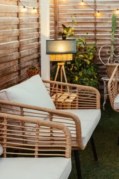 Zestaw mebli zewnętrznych, który doda Twojemu ogrodowi nieco rustykalnego stylu. Składa się z sofy, dwóch foteli i stolika do kawy – wygodnie pomieści do 4 osób. Meble wykonane są z wysokiej jakości rattanu oraz posiadają grube, wygodne poduszki. Z tym zestawem stworzysz idealne miejsce do odpoczynku z rodziną i spędzania kameralnych wieczorów z przyjaciółmi.