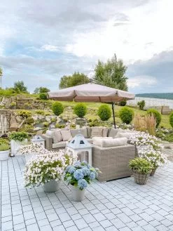 - Poza sezonem zaleca się przechowywanie mebli pod plandeką albo w suchym i chłodnym pomieszczeniu.