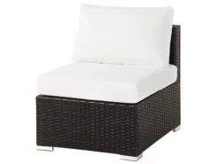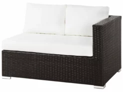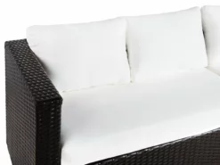 Zestaw ogrodowy, który ożywi każdą przestrzeń. Komplet doskonale sprawdzi się podczas rodzinnych spotkań, czy grilla z przyjaciółmi, gdyż może pomieścić nawet osiem osób. Duży narożnik doskonale współgra z fotelem i dwoma stolikami kawowymi. Zestaw został wykonany z techno rattanu oraz zawiera wygodne poduszki na siedziska. Idealne wyposażenie każdego ogrodu.
