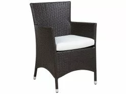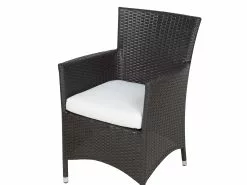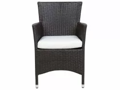 Letnie wieczory z rodziną, odpoczynek przy kawie w słońcu, długie wieczory z przyjaciółmi przy grillu, weekendowe czytanie gazety i gry z dziećmi – oferowany zestaw ogrodowy zadowoli nawet najbardziej wymagających! Duży, prostokątny stół zapewnia wystarczającą ilość miejsca dla rodziny i gości. Stabilna rama wykonana z aluminium malowanego proszkowo w całości opleciona jest ciemnobrązowym technorattanem. Przezroczysty blat z hartowanego szkła posiada zaokrąglone krawędzie, ponadto jest stabilny i łatwy w pielęgnacji. Wygodne fotele ogrodowe z komfortowymi podłokietnikami oraz wygodnie uformowanymi oparciami to prawdziwy hit. Wygodna, jasna poduszka posiada ściąganą poszewkę z odpornego na zabrudzenia oraz wilgoć poliestru.