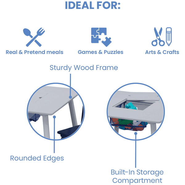 dzieci i składa się z solidnego stołu z miejscem do przechowywania na środku