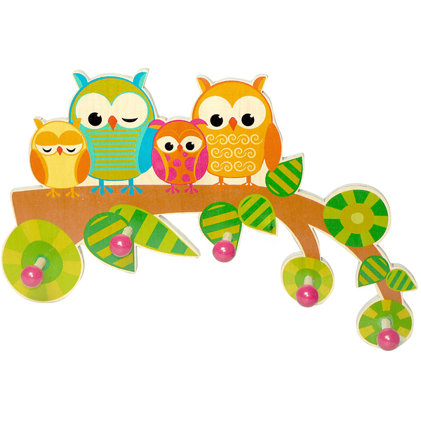 Kolorowy wieszak z 5 hakami do zawieszenia garderoby dziecka.