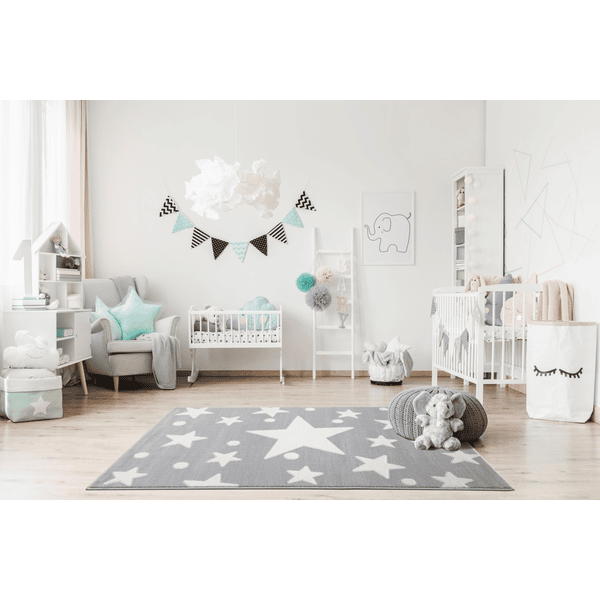 Piękny dywan dziecięcy ESTRELLA wnosi gwiaździste niebo do pokoju dziecięcego. Na jednolitym tle znajdują się liczne gwiazdy, które nadają szczególny urok. Dzięki nowoczesnemu wyglądowi, dywan nie tylko dobrze wygląda w pokoju dziecięcym, ale może również zapewnić więcej przytulności i harmonii w innych częściach domu. Oczywiście charakteryzuje się również wysoką jakością i trwałością!