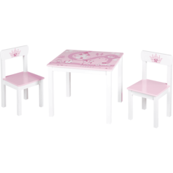 Trzy-częściowy zestaw mebelków do pokoju dziecięcego. Mebelki wykonane zostały z masywnego drewna i przeznaczone są dla dzieci w przedziale wiekowym od 2 do 10 roku życia. Śliczny stolik i dwa pasujące krzesełka. Twoje aktywne potomstwo może już od najmłodszych lat wygodnie siedzieć, jeść, bawić się przy stoliku roba.